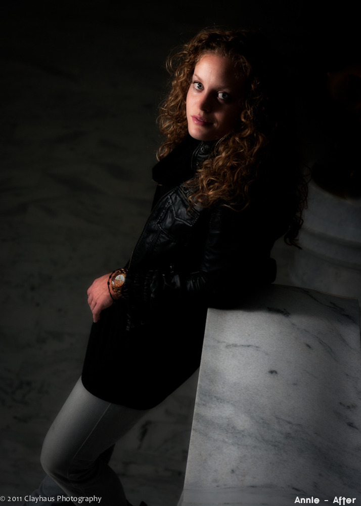 Case in point: a judge at a recent competition really liked my infrared image of Manhattan shot through the cabling of the Brooklyn Bridge. But, he also singled out a bright spot in the lower-right corner of the photo (caused by the afternoon sun shining directly on a building’s face). I had absolutely never paid any attention to it and in fact had never even noticed it…until he pointed it out. Then it became as a grain of sand in my eye, a pebble in my shoe. Every time I looked at what I had thought was a pretty good image, all I saw was that small bright square in the corner. Small it may have started; quickly it became the cyclopean eye of an oncoming train. Using Nik Software’s Viveza I burned in the offending area enough so that now I again see the bridge and not that Macbethean damned spot. More recently, I posted a series of images from a portrait shoot onto the critiquing forum of Photography Review. A good group of folks ‘reside’ there who are diverse in their approach to photography and facile at critiquing images gently but accurately. To this end, they actually offer useful suggestions on your posted images (rather than the useless “awesome photo, dude!” you see in other online venues). One image I posted I really was quite happy about and generally the critiquers were complementary as well. However, a couple of them dinged me on two distracting highlights that for them subtracted from the image. I, of course, again, never noticed them until they were pointed out and then I couldn’t stop noticing them!
