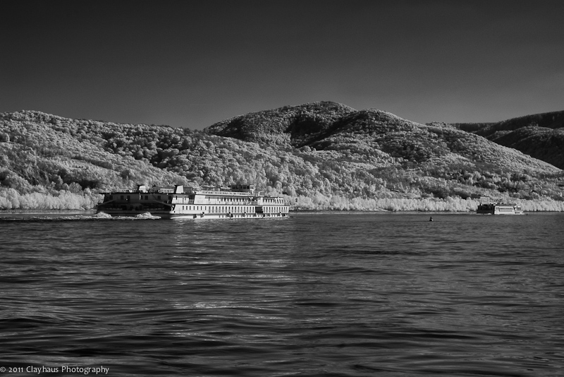 Two days later found us in the Gustave Eiffel designed (so we were proudly told by a Hungarian woman who also kindly pointed us in the right direction) Nyugati train station where, with seven minutes to spare, I ordered our tickets from a distinctly unfriendly non-English speaking agent. (Though I surprisingly found a high proportion of Hungarians speak quite good English, there were the occasional few who did not. In most cases they were very pleasant as we worked our way through our discussion, pointing, drawing, pantomiming as needed. Very rare was the rude Hungarian.) ??Tickets in hand, we rushed to our train and with the help of our ticket puncher, 45 minutes later we debouched at Nagymaros. On the east bank of Danube, we made our way through the sleepy village just in time to jump aboard a funky ferry for our brief ride across the river to Visegr??d. The ferry consisted of one barge being pushed and pulled by a small tugboat. The barge could fit perhaps 8-10 cars (or, as we would find on our return trip, one large semi-truck!) and however many pedestrians.