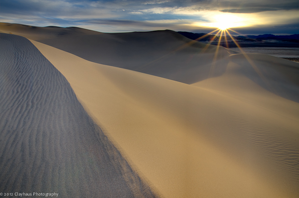 Fast forward 299 months…the Scout is long gone, Whiskey – our first golden retriever – lived a long life but is also no longer with us, our daughter is grown up, my wife was at home, and me and my friend / photography-partner finally arrived after a 10+ hour drive at the primitive Eureka Valley campground on this cold, cloudy March afternoon. Death Valley National Park extended its borders a decade-and-a-half-ago to include this valley, as well as Saline and Panamint Valleys. Other than fourteen or so widely scattered campsites, and the one lone sentinel of an outhouse, it was hard to see any difference in what I remembered from 25 years ago. Oh yes, no bozos are permitted to ride their toys on the dunes…progress.