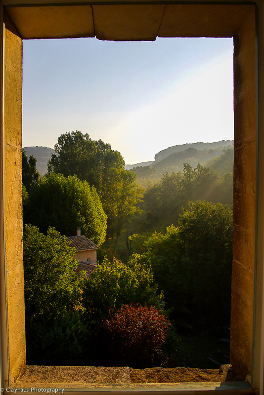 One of my favorite window shots, captured as the sun rose over the warm hills of the Lubéron, in Provence France. We were staying in the lovely country hotel of L’Auberge Aigue Brun, and a more peaceful, bucolic scene could not have been dreamt. And, in fact, my wife did continue to slumber while I shot this. Who now has the more memorable dream?