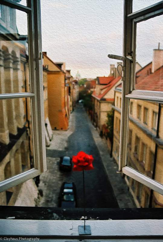My father and I took a two week trip to Poland in 2003. We completed our journey by staying three nights in an apartment just off the old town square. This beautiful area was almost completely razed by the retreating German armies, but the Poles did their best to restore the area to its former glory. I used a treatment on this image, looking out our living room window, to convey a more impressionistic mood. It works for me, but maybe that’s because I was there.
