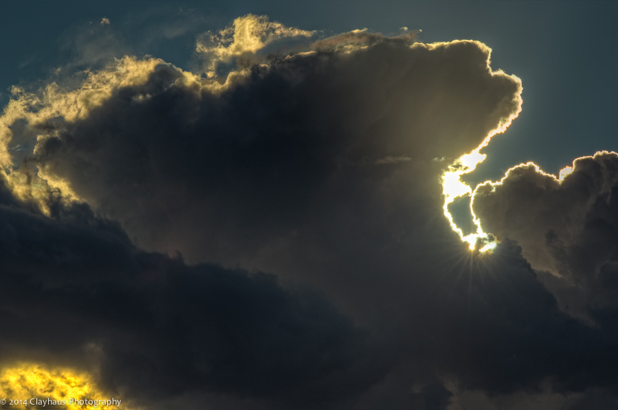 What else? Whether the sun is peeking out behind clouds (or trees, or a mountain, etc.) or is hidden behind and back-lighting the clouds (or trees, or a mountain, etc.), you will be shooting into a very high-contrast situation. In order to maintain detail in the shadows without blowing out the highlights, you will need to “help” your sensor. Some might suggest the old-school-but-still-valid methodology of using neutral density filters. I find that very awkward when trying to compose on the fly scenes that have highly variable contrast throughout the frame. That is why I almost always bracket my exposures. I may not need the extra latitude provided by the under and over exposed frames, but they are there. However, they WILL be necessary when shooting into the sun. In fact, I usually bracket with 5, rather than 3, exposures in very contrasty situations. (If your camera allows for 7 or even 9 bracketed exposures, have at it.) If the sun is not hidden but instead shining brightly (and painfully) in your viewfinder, then you may want to stop down your initial exposure a stop or so. Otherwise, even with 5 bracketed exposures, your least exposed frame may have too much blow-out.