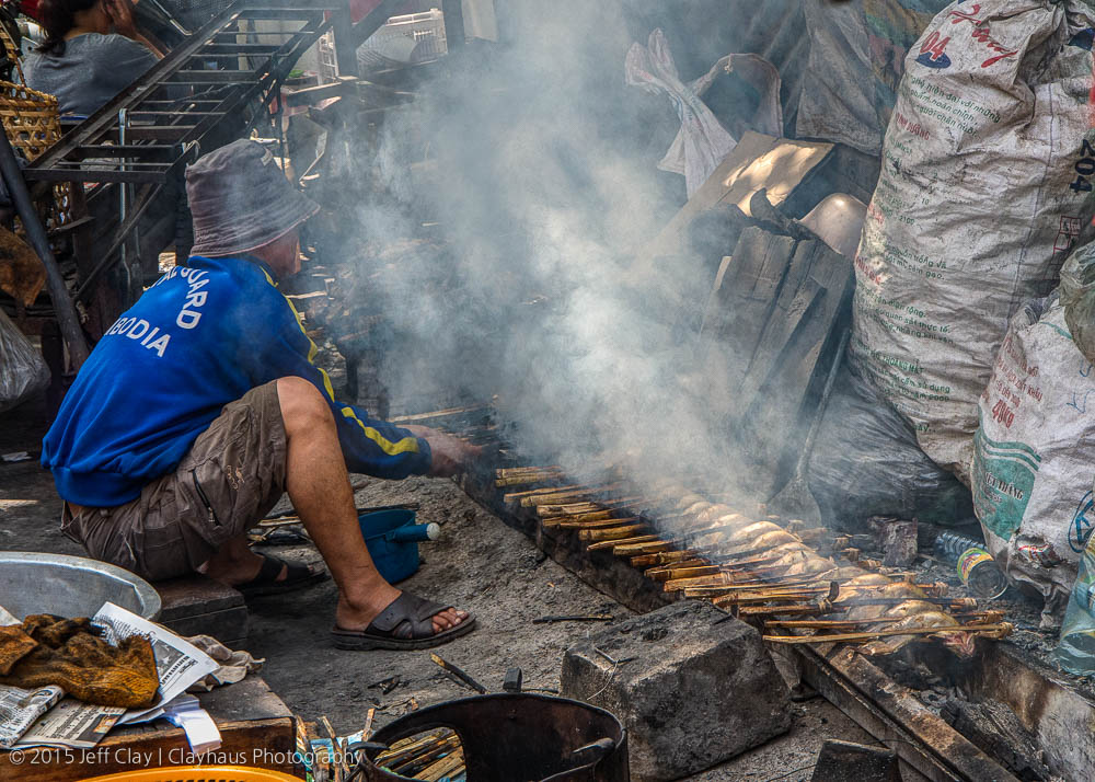 The ground floor of the White Building is filled with shops and beauty salons facing out to a street with children playing, fish and chicken being barbequed, and moto-scooters darting to and fro. These vendors and shopkeepers are residents as well of the building. Watching ladies getting nail jobs and their hair done-up, it is clear that some Cambodian women are as conscious of their looks as a Western woman might be. No surprise really. In another little bar-type outdoor venue some men play chess whilst others quietly observe. Could be Prague but for for the Angkor beers and humidity.