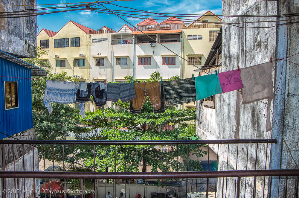 The White Building would be considered a deathtrap in any Western society: stairwells without railings, a rooftop with sheer unprotected drop-offs, dim corridors, open flames, no exit signs, no fire extinguishers, overcrowded with poor ventilation. But here, it is somehow both iconic and emblematic. The promise of a third-world, post-war country, emerging from its long colonial slumber, roughed-up, battered and beaten, but still hanging on with an innocent, guile-free smile. This is Cambodia.
