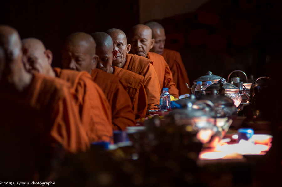 Photographing long queues of colorfully robed monks with their silver bowls in hand has become seemingly de rigueur in Cambodia, Laos and Burma. So much so that there has been some negative press around it. It was a new experience for me so I certainly knew nothing but to remove my shoes and hat (when entering any of the temple buildings) and be polite and unobtrusive. I did my best on those counts. Our intrepid guide, Nathan Horton, had of course been there many times and so the presence of his eight photographers was no surprise to the establishment.